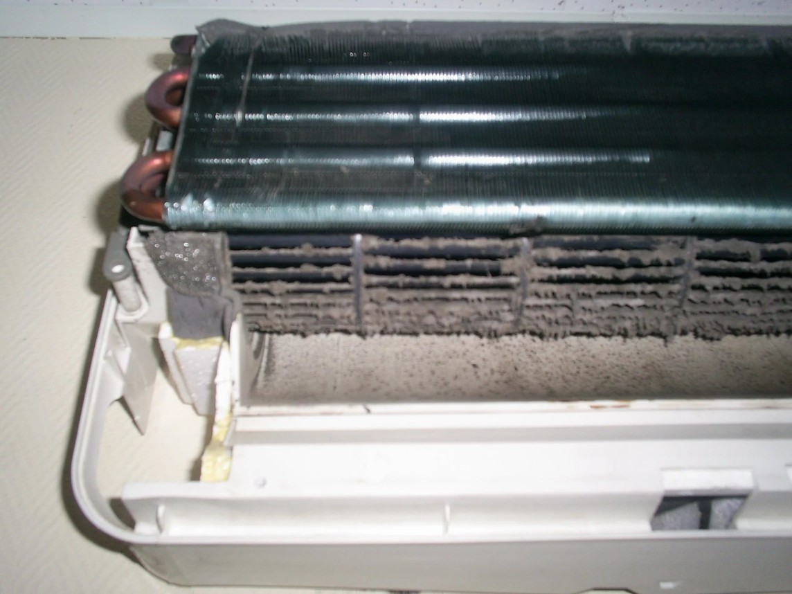 Dans le cas où un mauvais refroidissement est complété par l'arrêt du compresseur, la raison réside dans pollution de l'unité extérieure. S'il y a beaucoup de poussière, de peluches à l'extérieur de la pièce ou s'il est situé près d'une autoroute, le radiateur et le condenseur se couvriront rapidement d'une couche de saleté. Cela provoque une surchauffe du compresseur, entraînant un arrêt.