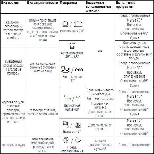 Il est nécessaire de choisir correctement le régime de lavage, en tenant compte à la fois du matériau de la vaisselle et du degré de contamination.