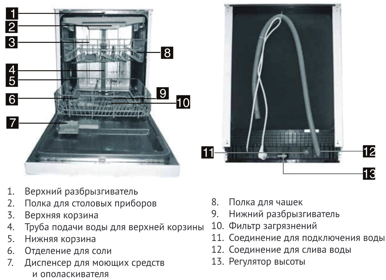 Les schémas situés dans la documentation technique permettent d'installer et de traiter correctement conception de lave-vaisselle.
