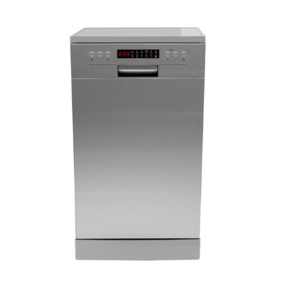 Une machine autonome semble attrayante, le fabricant a travaillé sur la conception du lave-vaisselle - un élégant boîtier en argent, un panneau de commande intuitif sur la porte battante, un petit écran et une indication lumineuse. Un commutateur rotatif est prévu pour sélectionner un programme de lavage. Rien de plus - tout est modeste, mais de bon goût.