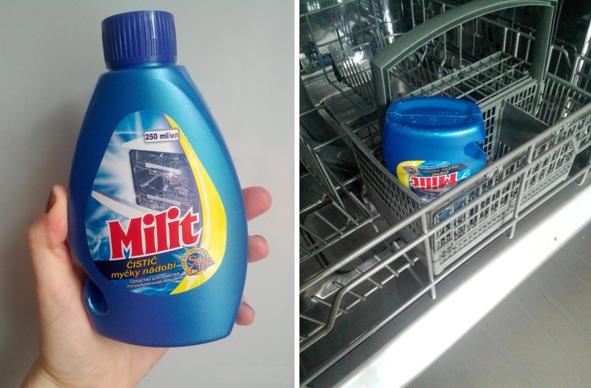 Le fabricant recommande d'utiliser Milit 1 à 2 fois par mois, mais les femmes au foyer se concentrent généralement sur le degré de pollution de l'équipement. Si de la graisse s'est accumulée sous les joints et qu'une odeur désagréable est apparue dans le réservoir, il est temps de prendre une bouteille de produit et de faire le nettoyage.