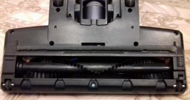 En cas de contamination excessive, la brosse est bloquée. Pour éviter une telle nuisance, vous devez nettoyer régulièrement l'appareil. Pour ce faire, retirez le rouleau brosse en ouvrant le loquet. Le corps en plastique de la buse peut être nettoyé de la poussière avec une éponge légèrement humide