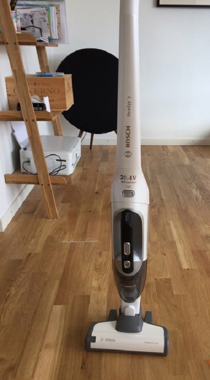 L'aspirateur pliable sans fil de ce modèle a un faible niveau de bruit pendant le fonctionnement. La consommation électrique n'est que de 415 watts, ce qui la rend plus économique contrairement aux unités Bosch. Mais, parallèlement à cela, la portée de son application est considérablement réduite.