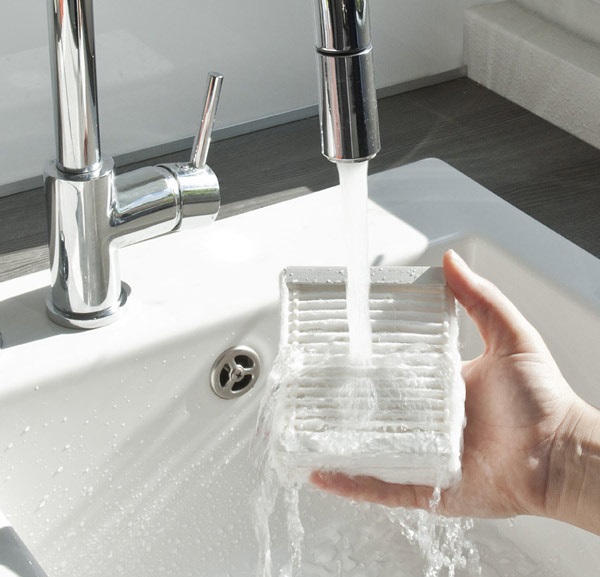 Les éléments filtrants inclus dans l'ensemble de l'appareil, y compris les produits en caoutchouc mousse et les filtres fins HEPA, peuvent être lavés avec de l'eau ordinaire.