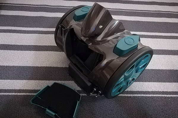 Le récipient est facile à nettoyer - pas besoin de décrocher le tuyau à chaque fois. Vous pouvez en apprendre davantage sur le degré de remplissage du réservoir avec des ordures sans ouvrir le couvercle, car les parois du sac à poussière sont transparentes.