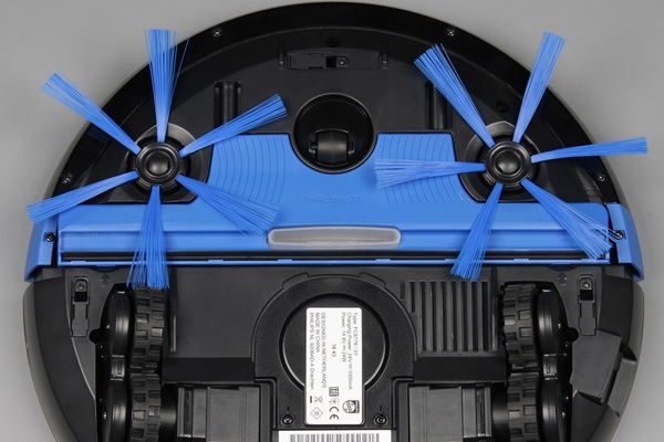 Par exemple, les bords inférieurs biseautés sont visibles, ce qui permet à l'appareil de se déplacer librement sur les surfaces de sol, sur lesquelles il existe de petites différences de hauteur. Autrement dit, un aspirateur grimpe facilement d'un stratifié sur un tapis et saute en arrière.