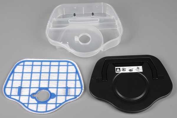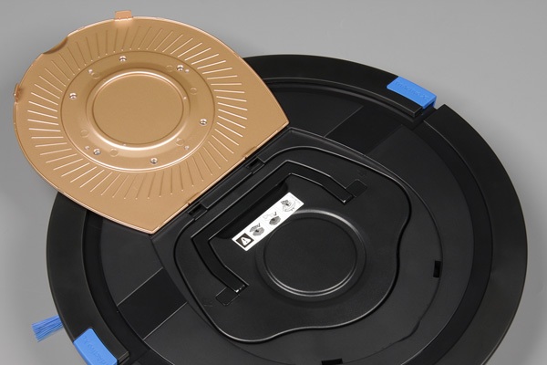 Le couvercle sous lequel se cache le dépoussiéreur peut être facilement identifié par la couleur bronze, comme le prétend le fabricant, - il est situé au centre en haut de l'appareil.