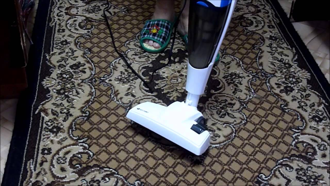 Il nettoie bien les surfaces lisses et les tapis. En plus nettoyage de haute qualité les acheteurs célèbrent faible bruit ce modèle. Le fil est assez long, il peut être fixé sur un crochet spécial pour ne pas gêner le processus. L'approvisionnement en fluide est contrôlé par la gâchette sur la poignée.