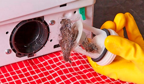 Tout cela s'accumule dans le filtre et le tuyau à travers lesquels la machine libère les eaux usées. Recommandé nettoyer le filtre de vidange machine à laver au moins une fois tous les 3 mois, et avec une utilisation active, il est possible plus souvent.