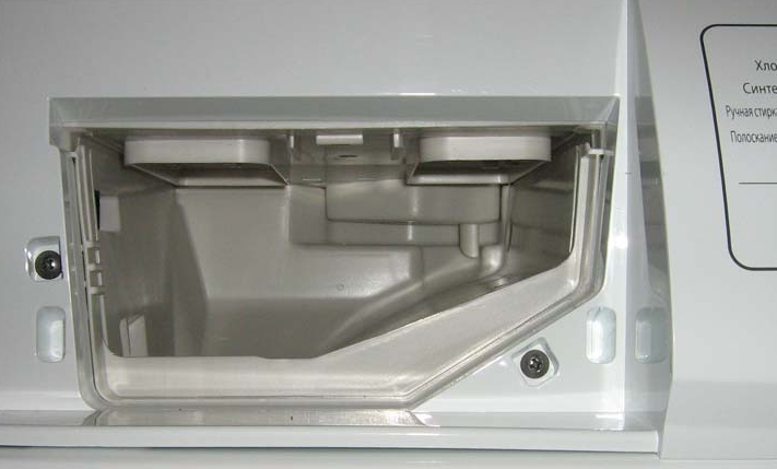 Une couche rugueuse d'eau dure apparaît sur les parois du compartiment à détergent, des traces de gouttes de poudre et divers rinçages subsistent. Tout cela doit être supprimé.