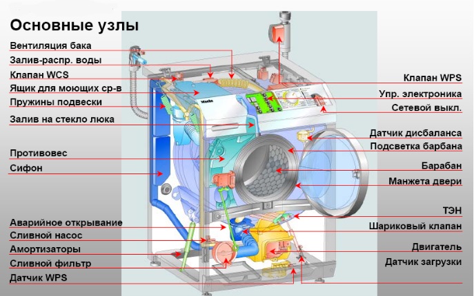 Les machines à laver fabriquées par différents fabricants sont généralement similaires et remplissent le même ensemble de fonctions de base. Cependant, il existe des différences importantes dans la conception des unités et la disposition des pièces internes de travail.