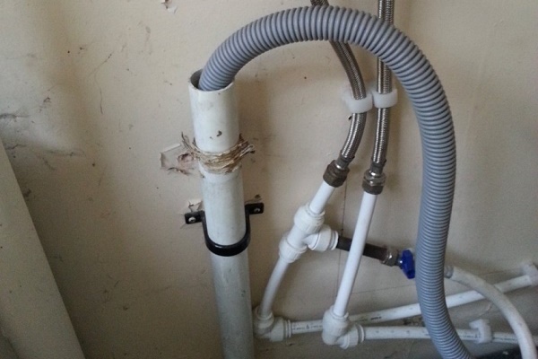 Lorsque nous avons déménagé dans l'appartement, il s'est avéré qu'il était nécessaire d'installer la machine pour conduire indépendamment les tuyaux. La particularité était que l'eau des toilettes, du lavabo et des comptoirs était reliée à un tuyau flexible, au lieu de tuyaux en plastique. Jusqu'à présent, j'ai décidé de ne pas passer au PVC et j'ai apporté sans problème de l'eau à la machine à laver avec un tuyau flexible (métallisé).
