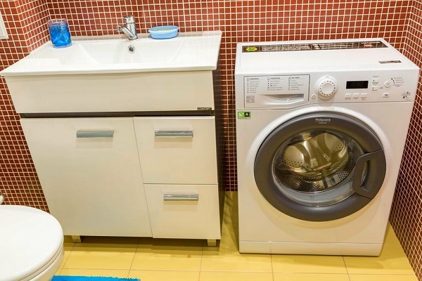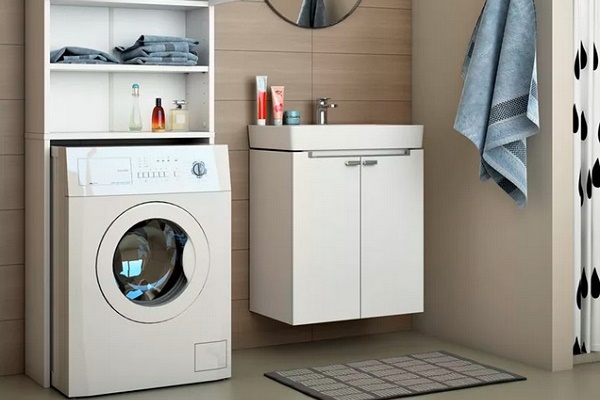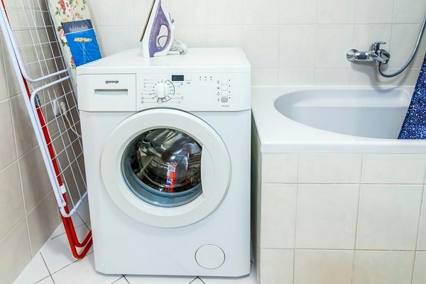 La salle de bain. C'est un endroit traditionnel pour la machine, car dans cette pièce, qui a toutes les communications nécessaires, il est facile d'équiper le drain et l'alimentation en eau.