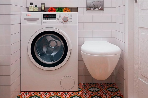 Malheureusement, cette option ne peut pas être utilisée lors de l'installation du lave-linge dans une salle de bain ou une cuisine séparée, car l'unité automatique et les toilettes doivent être dans la même pièce, de préférence à une petite distance l'une de l'autre.