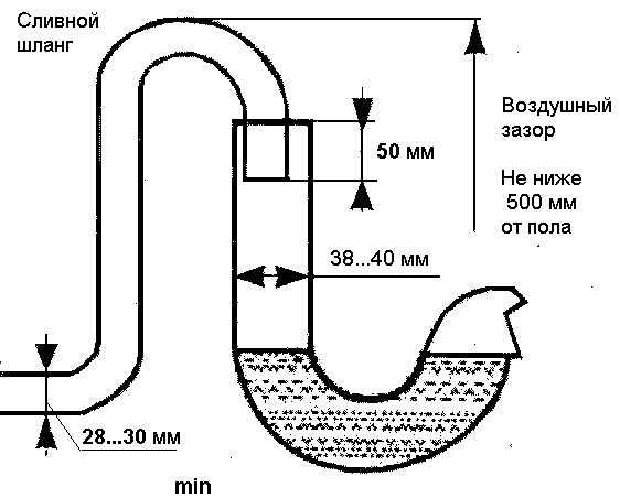Dans ce cas, le tuyau de vidange incurvé en S est inséré dans le tuyau afin qu'il ne touche pas les eaux usées, puis il est soigneusement entouré d'un scellant et scellé. La distance entre le point d'inflexion et le sol doit dépasser 0,5 m.