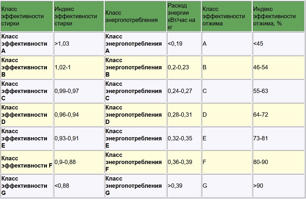 La division des unités de lavage en classes facilite grandement le choix d'une machine aux capacités nécessaires et suffisantes. Plus ils sont élevés, meilleur est le lavage, mais plus le montant que l'acheteur devra verser à la machine à laver est élevé. Immédiatement, nous notons que pour résoudre les problèmes quotidiens, les indicateurs de qualité maximale sont facultatifs.