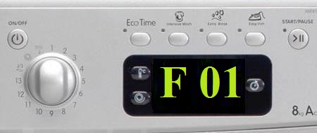Erreur F01 indique des problèmes dans le circuit de commande du moteur, qui entraîne le tambour de la machine à laver. S'il n'y a aucune réaction au signal du contrôleur électronique (carte), l'appareil ne fonctionnera pas et lorsque vous essayez de basculer vers un autre programme, il continuera à afficher de manière persistante le code d'erreur.