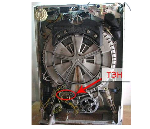 Si le code est apparu sur l'écran lors de la phase de lavage ou au démarrage (la machine ne veut même pas puiser de l'eau), la raison réside probablement dans l'élément chauffant lui-même. Il peut «poinçonner» le boîtier lorsque les contacts s'éloignent ou tout simplement griller.