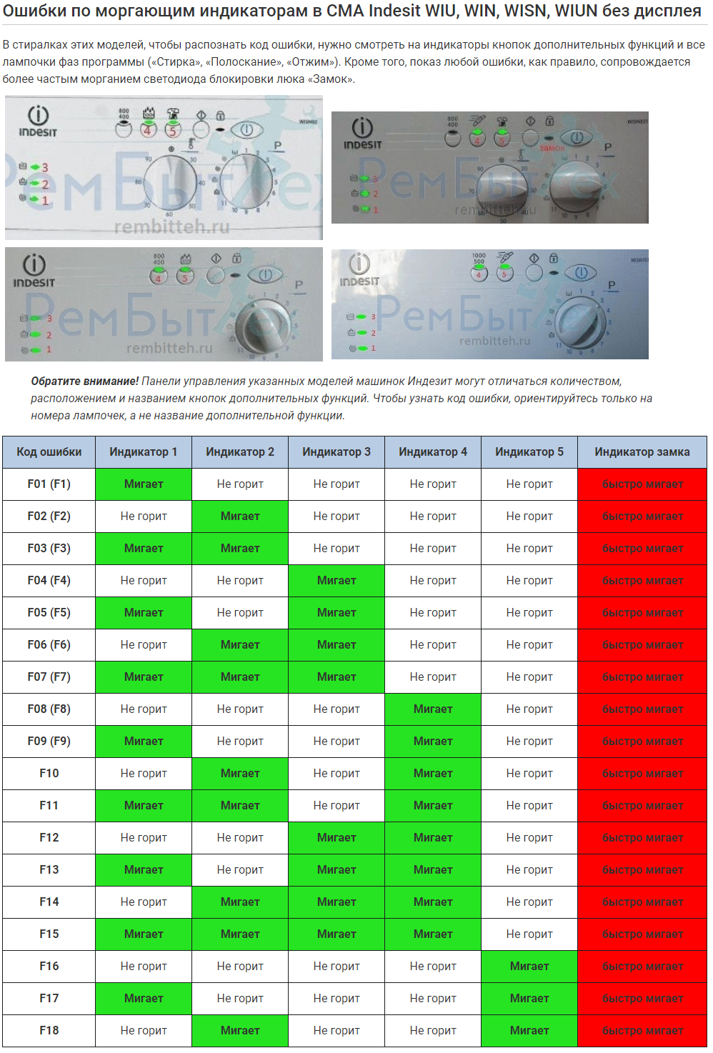 Avec plein décodage des codes d'erreur Dans le fonctionnement des machines à laver Indesit et les moyens d'éliminer les violations, un article sera entièrement consacré à ces questions importantes.