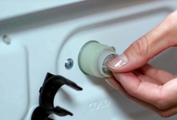 - Au point où le tube est connecté à la machine à laver, un maillage fin sera visible - c'est le filtre. Il doit être soigneusement retiré avec une pince, nettoyé avec une petite brosse et rincé à l'eau.