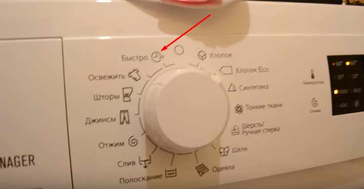Par exemple, Electrolux EWS 1064 NOU (photo ci-jointe): sélectionnez n'importe quel mode et réduisez le temps en utilisant l'option «Time Manager». Le temps initial est réduit de près de 2 fois avec cette option. Si vous sélectionnez le mode «Rapide» ou «Rafraîchir», vous pouvez obtenir un temps de lavage de 30 à 35 minutes.