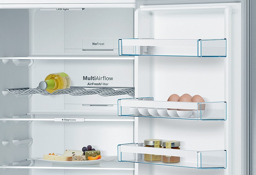 L'option NoFrost garantit la non-congélation des parois des chambres, une décongélation opportune en mode automatique et un refroidissement complet des produits. Cela est dû à la circulation forcée des flux d'air, qui se disperse à l'intérieur d'un ventilateur spécial.