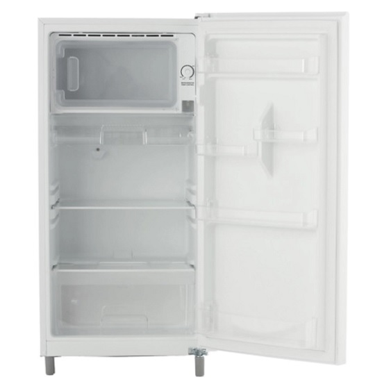 La porte est équipée d'une paire de plateaux à charnières, l'espace intérieur est équipé de grandes étagères. Le congélateur est situé en haut de l'unité. Il peut contenir jusqu'à 23 litres de viande, poisson, etc. congelés.