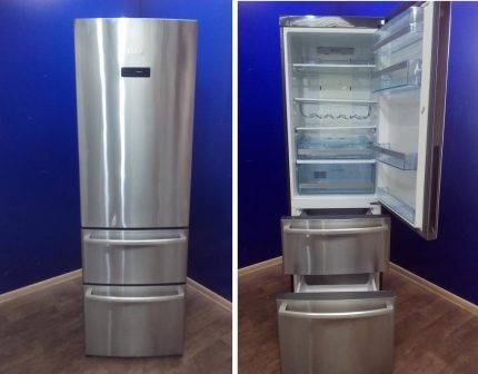 Parmi les inconvénients, les utilisateurs indiquent la nécessité de prendre soin de la surface du réfrigérateur en acier inoxydable.