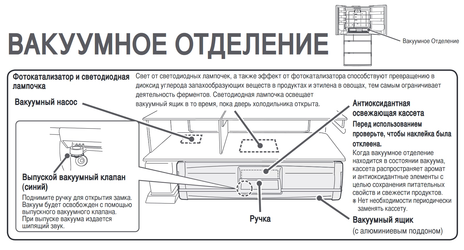 Cela est facilité par les technologies modernes, y compris un grand compartiment isolé qui préserve le niveau naturel d'humidité des légumes verts, de toutes sortes de légumes et des produits semi-finis.