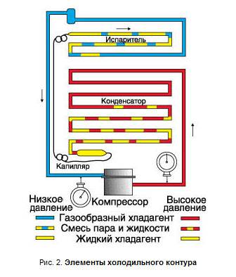 Le fréon passe facilement d'un état liquide à un état gazeux à des températures relativement basses. Le circuit à travers lequel il circule se compose de deux parties: interne et externe.