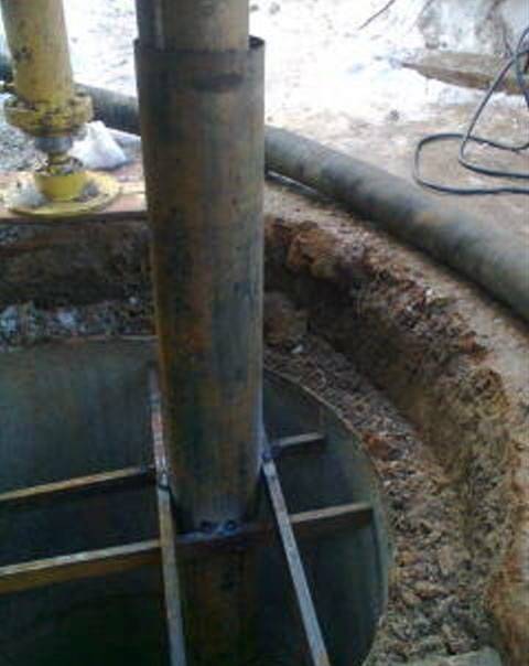 3. Kuyu içine bir iletken mahfazası tıkanır, ancak kuyu bataklıkta ise, o zaman bir iletken borusu tıkanır ve daha sonra küçük çaplı bir muhafaza tıkanır.