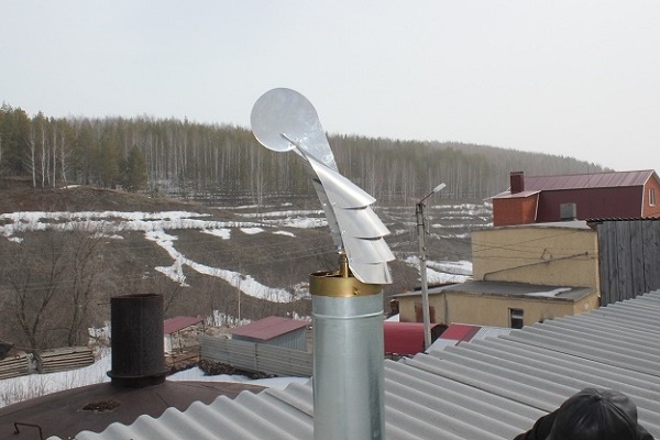 Deflektör, rüzgarın üzerindeki en küçük etkisinden kurtulabilir. Dahası, sadece yana doğru bükülmekle kalmaz, aynı zamanda yanma ürünlerinin baca borusundan çıkarılması için en uygun koşulları sağlayacak şekilde ayarlanır. Ana şey, rüzgarın bu sürece müdahale etmemesi.