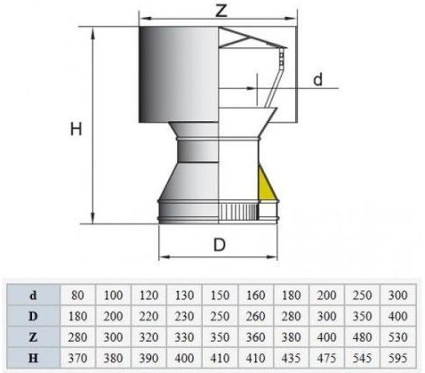 Çekişi artırmak için kullanılan cihaz evrensel olarak kullanılmaktadır. Baca sonu, kural olarak, belirli bir şekle sahip bir kapakla yapılır. Dahası, kuşlara, kelebeklere, yapraklara ve diğer flora ve fauna temsilcilerine karşı koruma için basit bir kapak değildir.