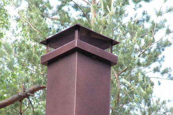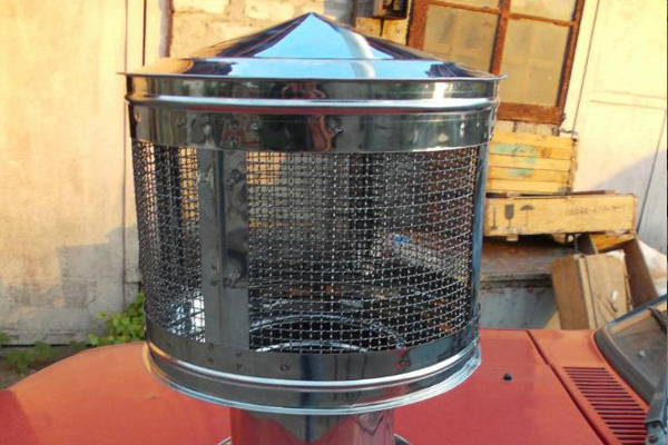 İlk seçenek - metal ağdan yapılmış bir şapka. Bu durumda, durumunu periyodik olarak kontrol etmek gerekir - yanma ürünleri, rüzgarın getirdiği diğer çöplerle tıkanabilir.