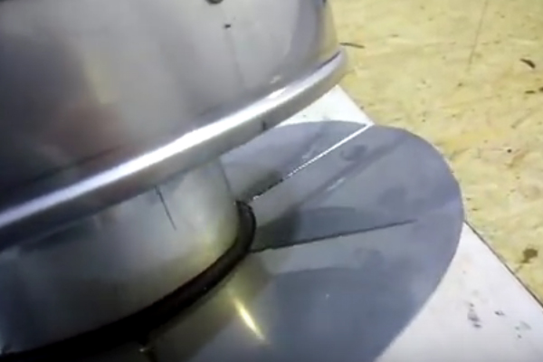 Kıvılcım önleyicinin monte edileceği gerekli detaylar, anahattan sonra metal makasla dikkatlice kesilmelidir. Bu muhtemelen bir şemsiye, paslanmaz çelik şemsiye tutucu şeritler, ağdan yapılmış bir silindir, istenen çapta bir metal boru parçası olacaktır.