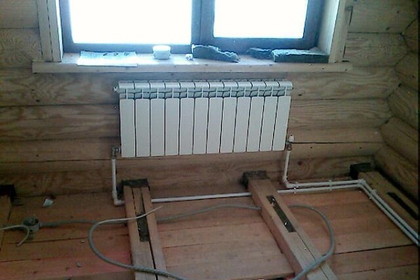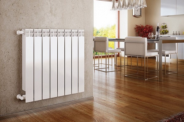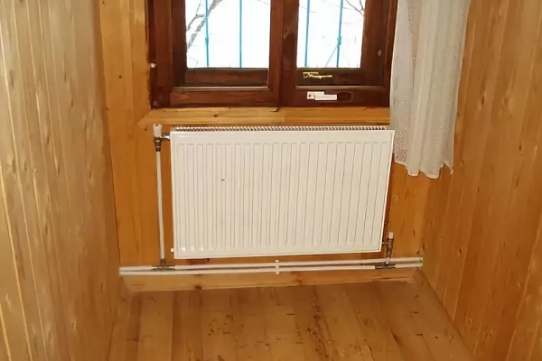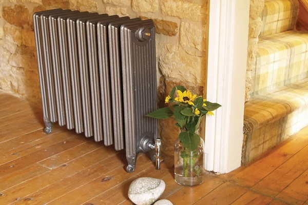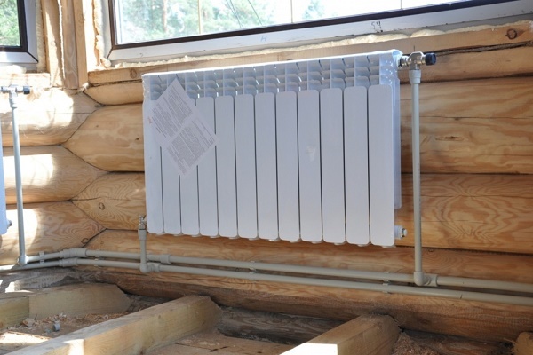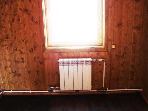 Bir kır evinde, kesitli, plaka veya panel radyatörler ısı radyatörü olarak kullanılır.