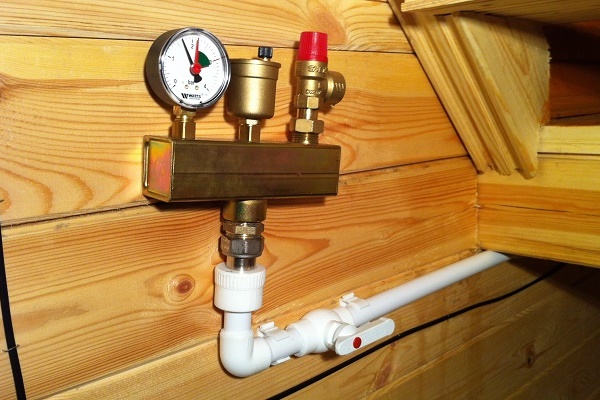 Güvenlik bloğu - kulübenin tüm ısıtma sisteminin güvenilir ve güvenli bir şekilde çalışmasını sağlayan üç cihazdan oluşan bir set.