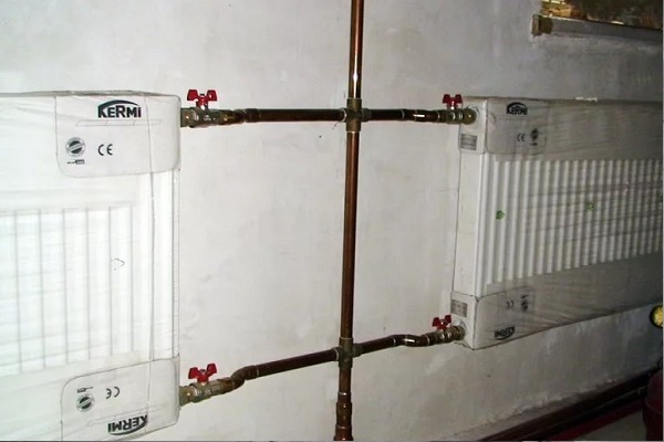 Daha az kablo bağlantısı olan devrelerde boru hattı ısıtma cihazlarının altından geçer. Bu seçenek çok daha iyi görünüyor, ancak her aküye Maevsky vinçlerinin zorunlu olarak takılmasını gerektiriyor.