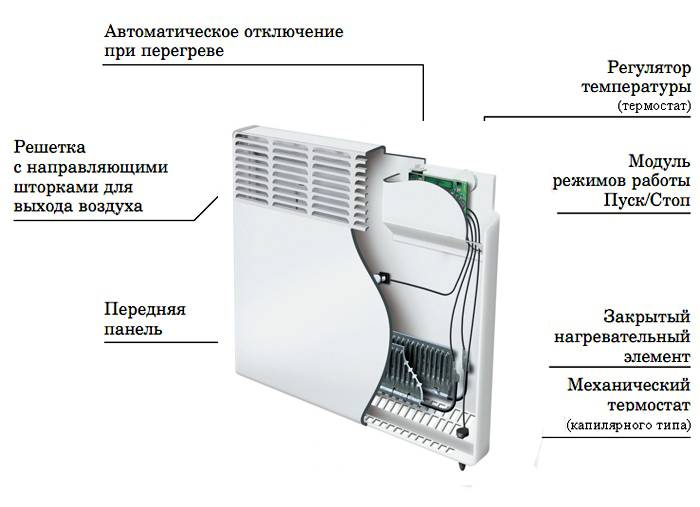 Tüm elektrikli konvektör tiplerinin tasarımı son derece basittir. Cihazın ana parçaları gövde ve gövdenin alt kısmında bulunan ısıtma ünitesidir.