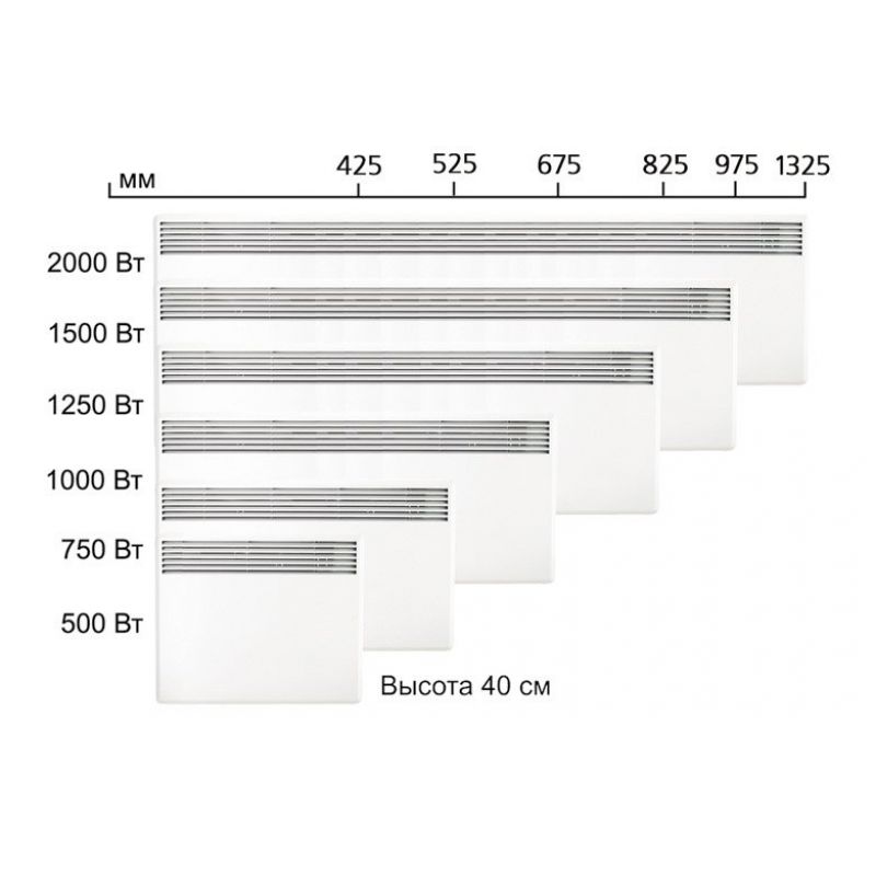 Üreticilerin hatlarında, çeşitli boyutlara sahip modeller mevcuttur: minyatür seçeneklerinin yüksekliği 15 cm'den başlarken, en büyük konvektörler 2-3 metreye ulaşabilir.