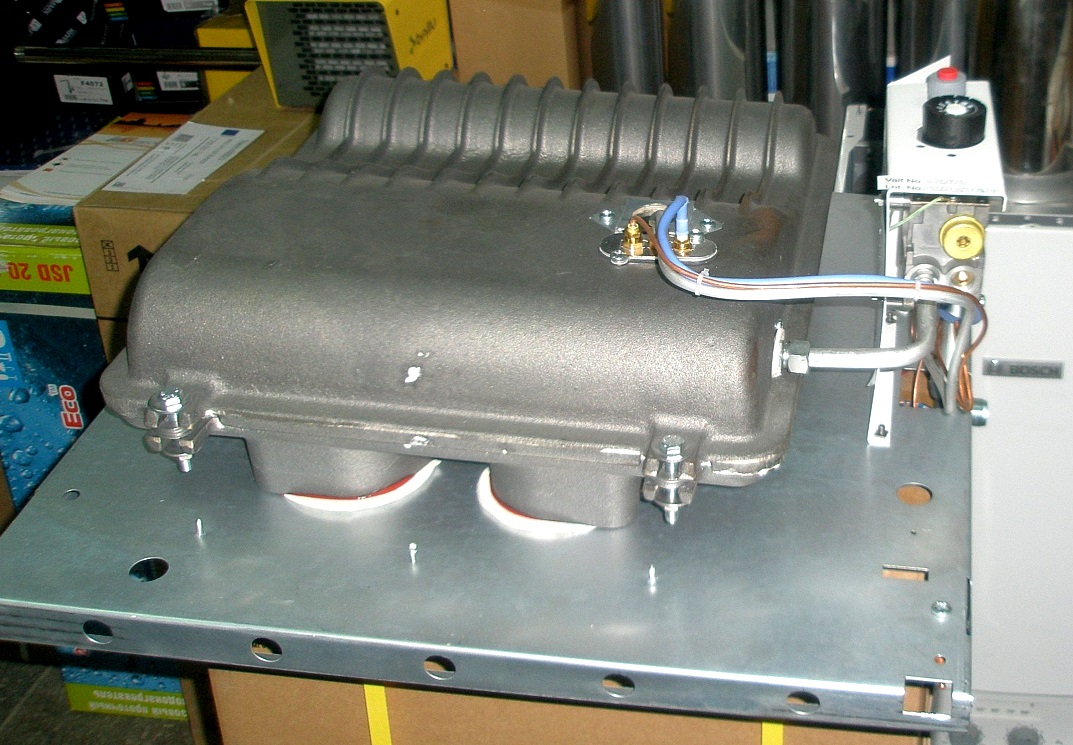 - Gaz yakıcı - gazın yanmasından sorumlu eleman. Bir ısı eşanjörü ile birleştirilir ve ateşleme yapılan bir elektrotlu bir ateşleyici ile donatılmıştır.