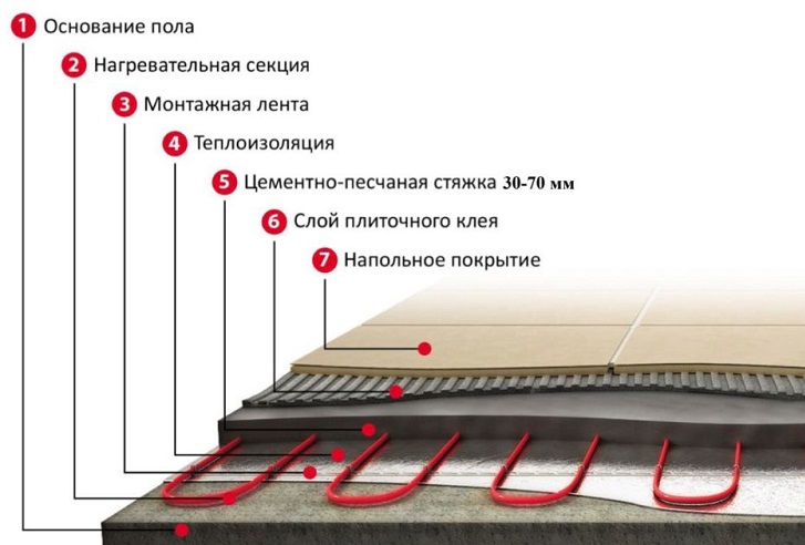 Bu ısıtma sisteminin temeli, monolitik bir çimento şap içine gömülü tek ve iki çekirdekli elektrikli ısıtma kablolarından oluşur.
