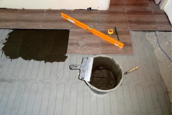 - Yerden ısıtma sistemine yönelik tutkal yardımıyla fayanslar yapıştırılır.