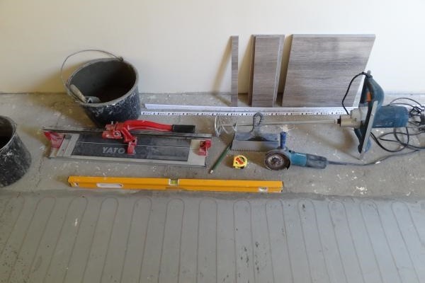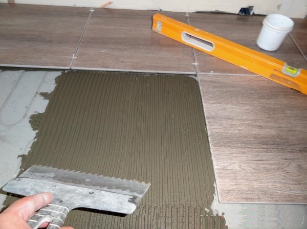 Şap gerekli mukavemeti elde ettiğinde, fayansları veya porseleni yapıştırma adımına geçin. Kaplama teknolojisi gelenekseldir. Tek şey, sıcaklık değişikliklerinden korkmayan bir yapıştırıcı üzerine kaplamayı “dikmektir”.