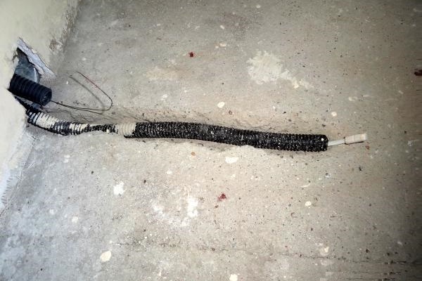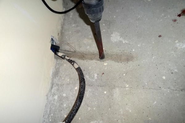 Sıcaklık sensörü, 9-16 cm çapında oluklu bir boruya yerleştirilir.Torun zeminle aynı hizada çalışabilmesi için, taş üzerinde çalışmak için bir diskle donatılmış bir zımba veya taşlama makinesi kullanarak, bir çakma yapın. Duvardaki soket ile zemindeki oluklu boru arasında, elektrik tellerinin montajı için 20 * 20 mm'lik bir oluk döşenir.