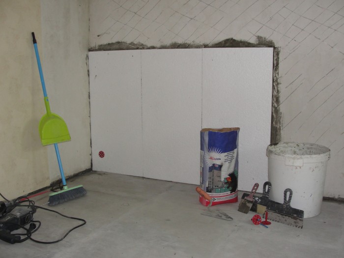 İlk başta bir çeşit nano-macun reklamı, baştan çıkarıcı olduğu kadar kalın polistiren için baştan çıkarıldım. Sadece para ve zaman kaybı. Yalıtım nedeniyle oda alanını azaltmak istemiyordu, ama oda açısal olduğundan, zorunda kaldı.