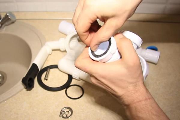 Sonra mantarı çıkarırız ve aynı şekilde sifonun sızıp sızmadığını kontrol ederiz. Sızıntı gözlenmezse, tahliyenin kurulum işleminin tamamlandığı kabul edilir.
