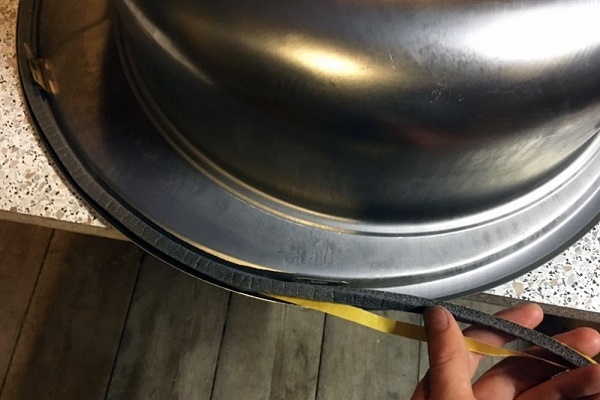 Çalışmayı daha uygun hale getirmek için dar bir spatula alabilirsiniz. Sızdırmazlık maddesine bir sızdırmazlık bandı koyduk. İnce kauçuk veya köpüklü polietilenden yapılabilir.