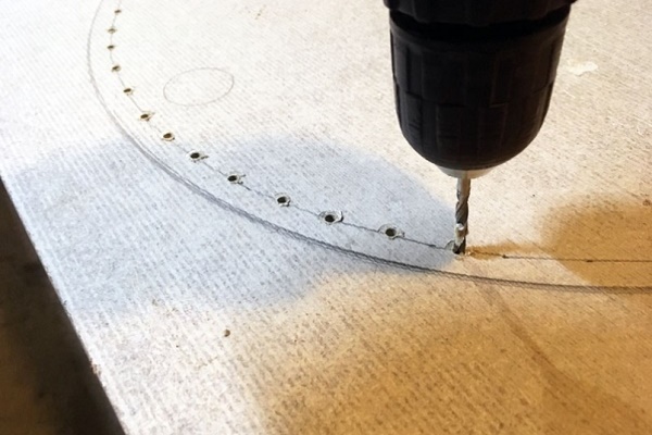 İlk önce dekupaj testeresi bıçağını yerleştirebileceğiniz bir delik hazırlamanız gerekir. Bunu yapmak için, bir matkap alın ve tezgahın o bölümünde, daha sonra çıkarılacak bir delik açın. Bıçağı yerleştiriyoruz ve kesmeye başlıyoruz.