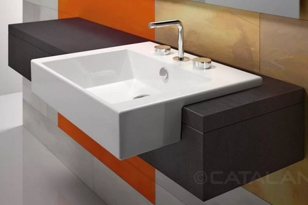 - Kısmen entegre lavabo. Cihaz tabandaki deliğe üçte bir, yarı veya başka bir şekilde düşer. Ekipmanın geri kalanı tezgahın üzerine çıkar.